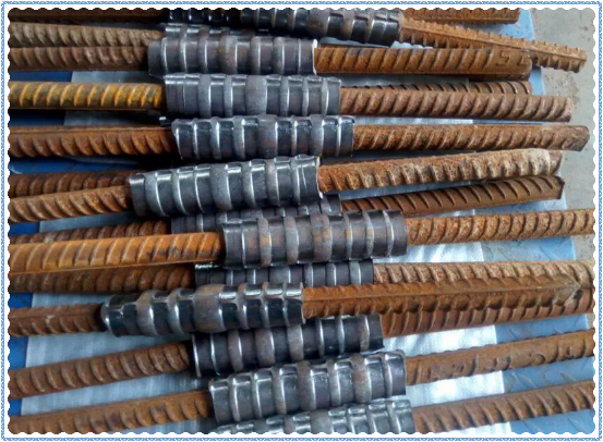4、將鋼筋與鋼套筒進行試套,如鋼筋端部有嚴重馬蹄、彎折或縱肋尺寸超大者,應預先矯正或用砂輪打磨,但嚴禁打磨鋼筋橫肋,禁止用電氣焊切超大部分。